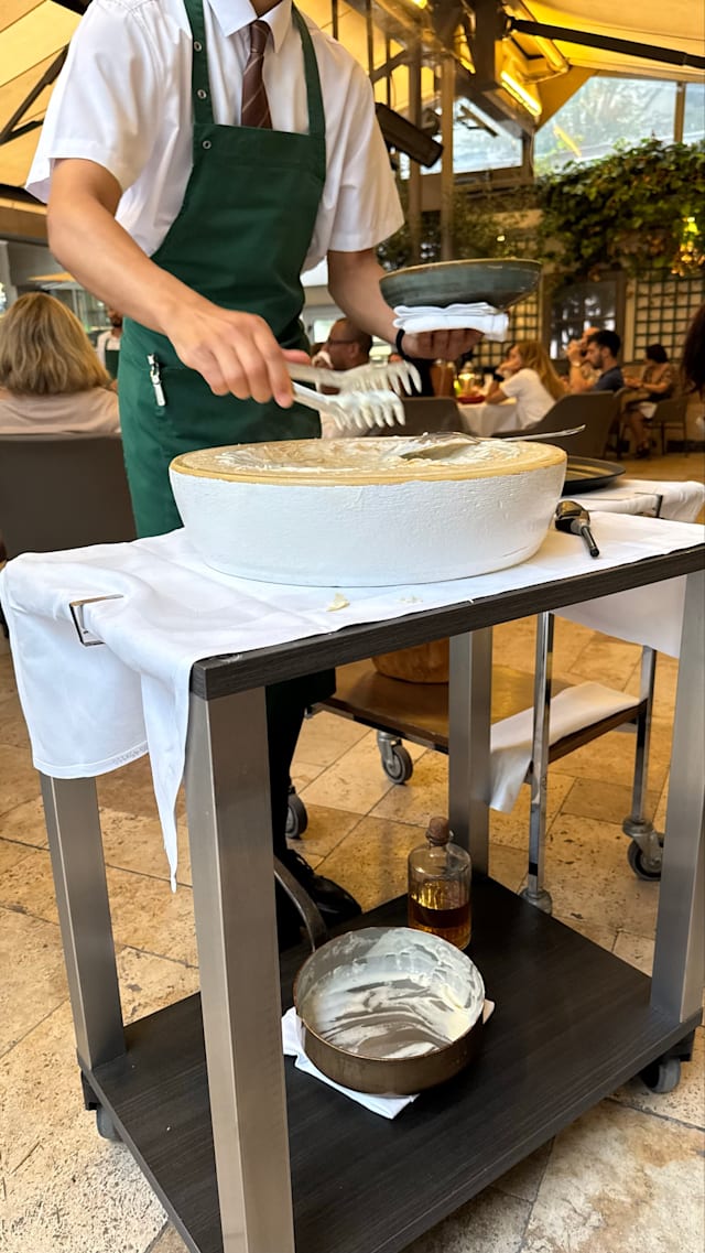 3/10The place looks romantic, the greeting was nice, but the food and service very disappointing. The food : prosciutto cut too think, carpaccio more a summer plate, the parmesan wheel pasta no flavor and the dessert mille feuille tasted like white cheese not sweet at all more like a greek salad. The service : the waiter was keep poring wine into our glasses like he was in a hurry to finish the bottle, and we ordered a small bottle of water, the waiter told us he only had big ones… Not good !!