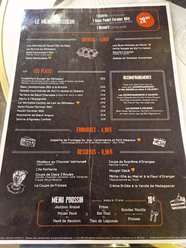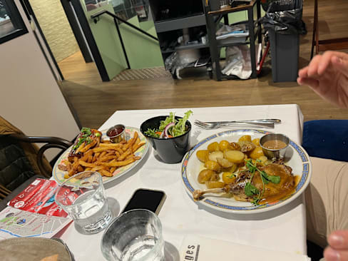 9.5/10The food was really good. Due to a minor error, the kitchen offered us a side for free. Definitely will go back in the future! I highly recommend it to anyone who wants to eat a classic roasted French dinner.
