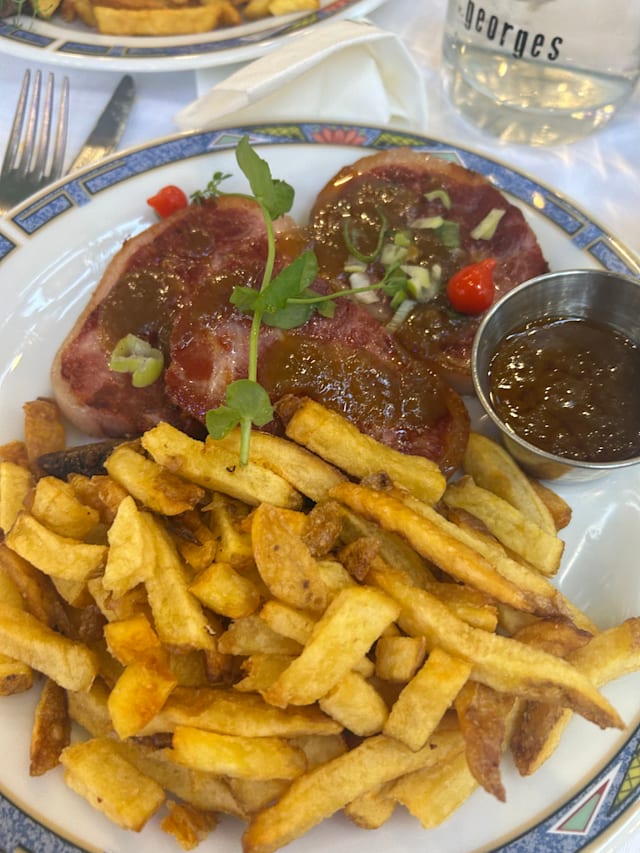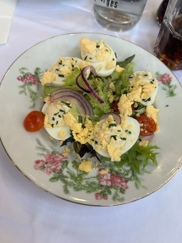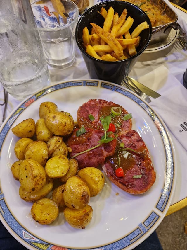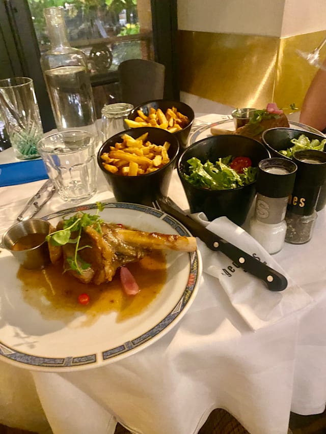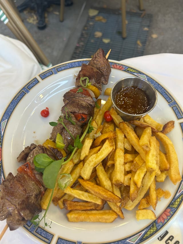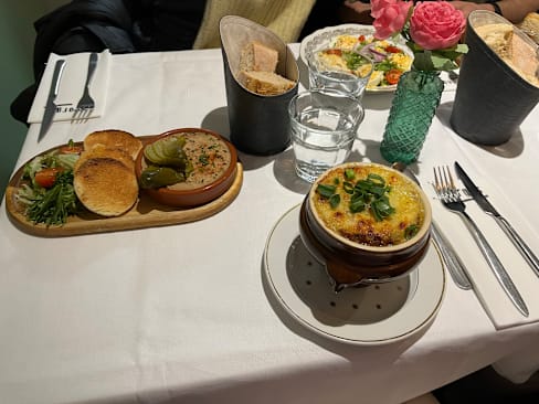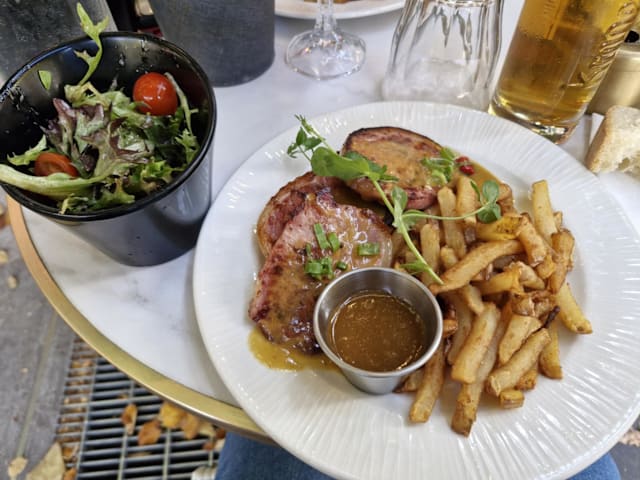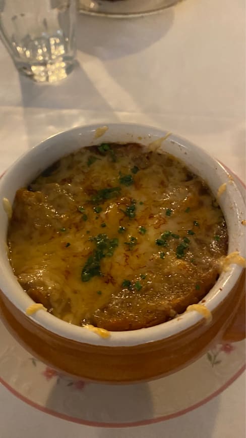9/10We went for lunch with family. Beginning from the place, it’s a charming restaurant with warm decorations and nice atmosphere. The waiters are very friendly and fast serving dishes. Food is really delicious and they serve generous amounts in each plate. We asked for start: Brie cheese with dry fruits (amazing) French onion soup (delicious and home made like), a chicken pate and mimosa eggs, all very delicious. For main dishes duck with sauce and potatoes (incredible) with the mushrooms sauce. Grilled duck (super) and pork ribs( also delicious and perfect point) the desserts were all delicious as well, but be aware because portions are big. Crème brulé, absolutely recommended. Bread was also very high quality. The only thing we didn’t like were French fries, they were not so fresh and crunch as they should be. But in general a very positive experience. Prices are good according to quality and amount of food.