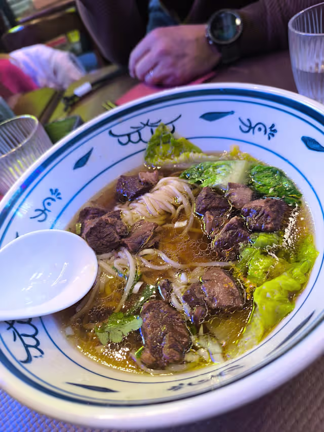 - Des nouilles fraîches servies avec du bœuf fondant, lentement mijoté dans un bouillon d'épices. La viande, tendre et savoureuse, sʼimprègne de parfums riches et profonds. Une expérience authentique au cœur de la tradition chinoise