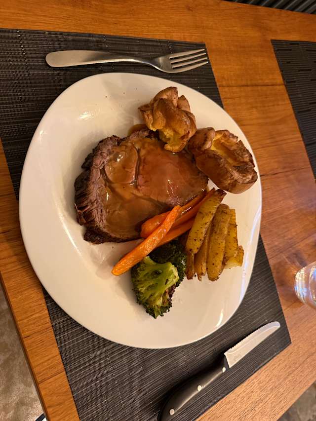 5.5/10We were expecting a sophisticated dinner for my birthday, instead it was a total expensive let down The portions are very small and the ingredients not combined well, all I could taste in my fish dish was vinegar and the starter had too much garlic. They squeezed 3 of us into a table for 2 when there was an empty table behind us all night It's ridiculous that they charge for extra bread when you've already been charged a cover and there's only a very small half slice per person in the basket. I thought I was seeing things when they served me 8 fat chips as a portion of roast potatoes to share amongst the 3 of us, couldn't believe it! We noticed that we were the only locals, no wonder! Won't be back!! To be avoided!