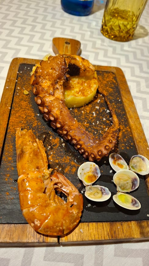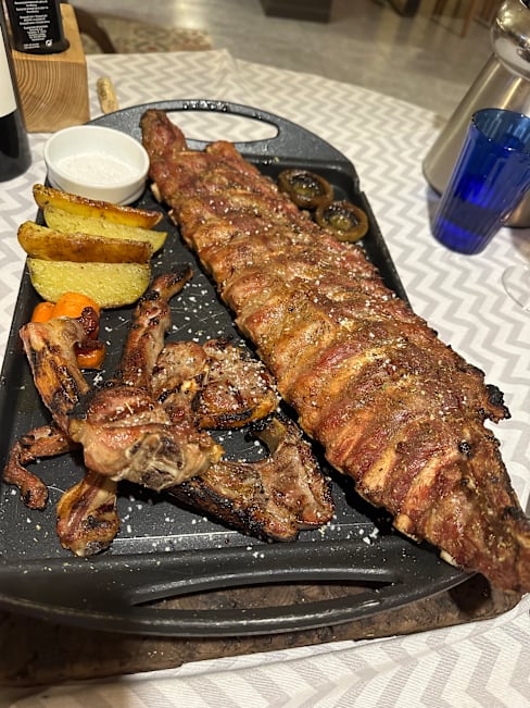 9.5/10A real ‘insider’ gem where the locals eat all the good stuff Catalonië -or more specifically the Girona area- has to offer. We ate an amazing dish of smokey and buttery (cleared butter) coal grilled mussels and cockels, and also enjoyed some meat filled potatoes along with it. As a second we were doubting between a tomahawk and an 600g Iberico cut and we were very happy to have chosen the latter. What an amazing piece of meat! As a nice addition I can definitely recommend the green aspergus. The service was also very nice and kind. The wine was excellent for the price. Overall value vs price was also top notch. If you don’t need cotton napkin or a panaramic view, you and your tastebuds will be king of the hill at this place.