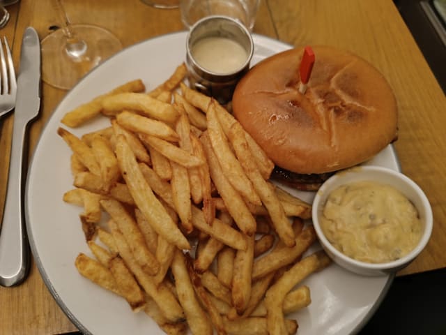9/10On Sunday evening when all the top-rated restaurants are closed or full, we stumbled upon this restaurant. The food is not fancy but very good. Steak was juicy, tartare was very well-prepared and burger was tasty. Everything came with fries which were nicely crisped and we had our choice of sauces for them. Service was relatively quick and friendly. Beer on tap was good.