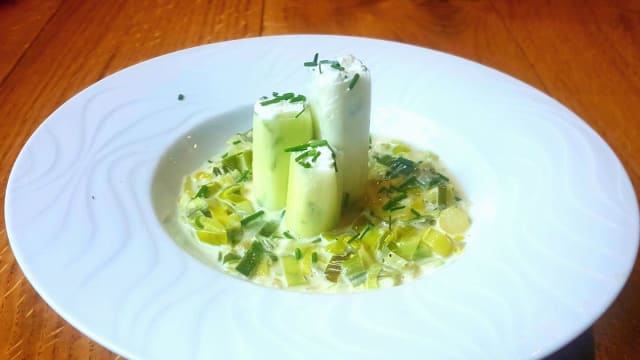 7/10Courgette millefeuille disappointing just cream cheese spread on courgette slices, overall good dishes but basic cuisine