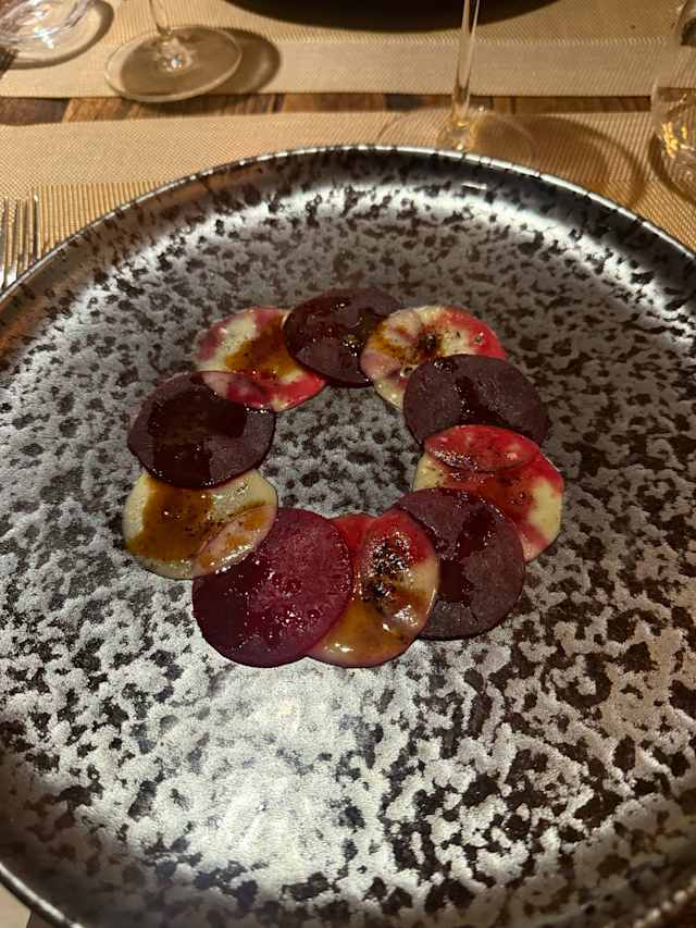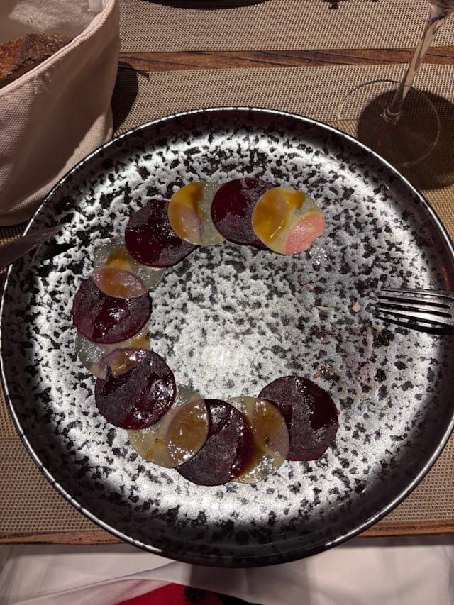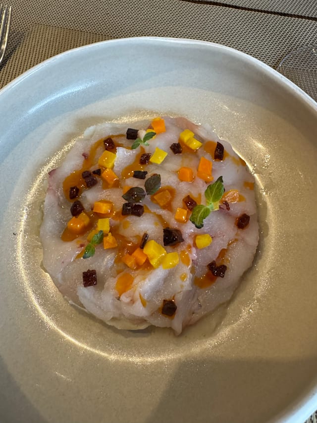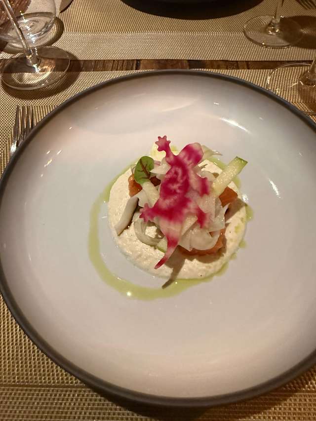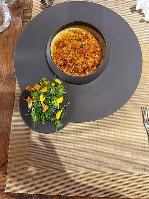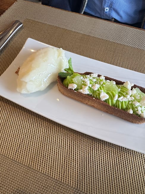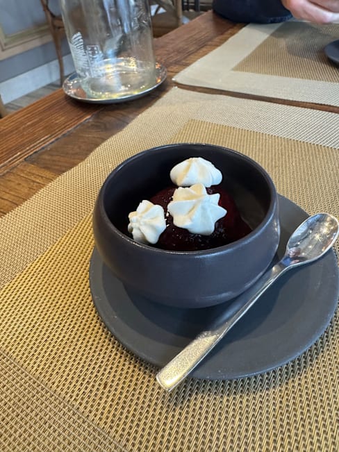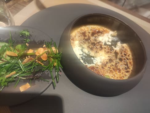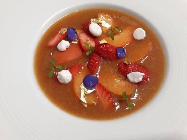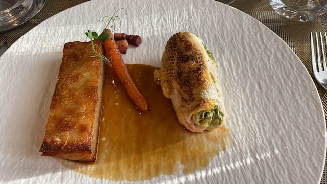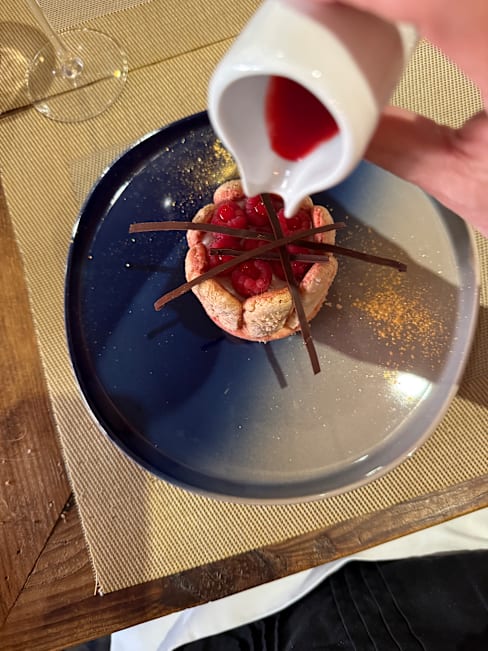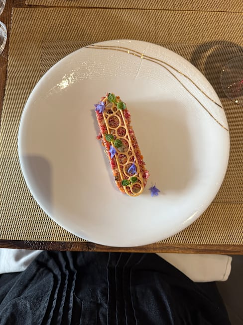 10/10From the moment we arrived, we were made to feel welcome. Our server was extremely helpful and friendly. We were presented with beautiful dishes, with a complimentary pre-starter of cold watermelon soup with purple flower garnish, along with beautiful savoury parmesan biscuits in the shape of salamanders and a small dollop of tapenade. My starter was a lovely round, colourful stack of grilled vegetables with mozarella, parma ham, and pesto. Our main course was a sort of fish salad topped with a savoury biscuit and shaved fennel - also topped with small edible flowers. We were brought a complimentary dessert of blackberry compote, blueberry fool, and a financier. The wine was delicious, the food was tasty and fresh, and the service was phenomenal. Thank you for accommodating our requests, telling us about the train times back to Paris, and for an overall special evening! It was fantastic.