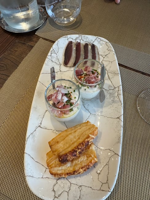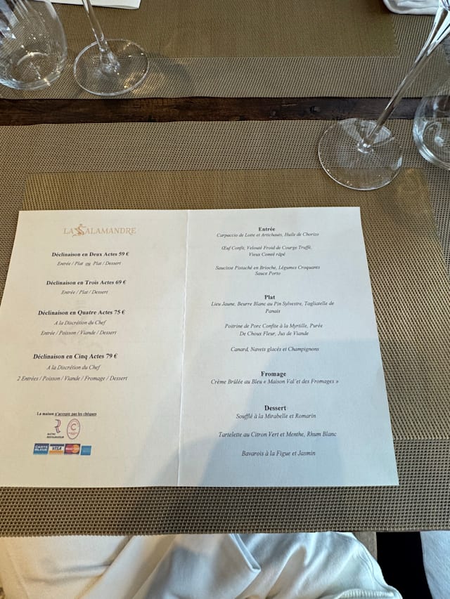 10/10We had such a pleasant meal at La Salamandre. I had the excellent steak tartare (very unique approach that included artichokes and a citrus tang), followed by rabbit in a sea of peas, and then a lovely twist on blue cheese: baked with a sugar crust with a refreshing side of greens & edible flowers. Lastly the lovely Charlotte á la Framboise, which was so delicate and a perfect ending. The wine the hostess recommended was a perfect match with our meals. If I lived here I would definitely be a regular.