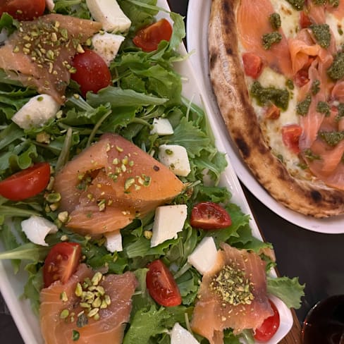 9/10We expected a pizzeria, and this is actually , as the name suggest, a restaurant which has lots of smoked salmon dishes, unlike the traditional Neapolitan pizzerias around it. Nevertheless, the food (including their classic margarita and their calzone) was really good, the waiter friendly and smiling and we had a good time.