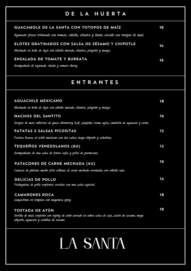 MENU NOCHEBUENA LA SANTA €80 per guest