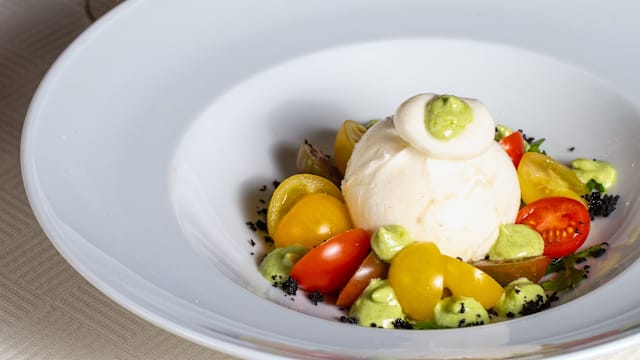 Fleur de lait, pesto, tomates cerises, bufala, pignons