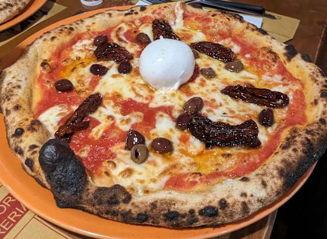 - Pomodoro, mozzarella, prosciutto cotto, tenno, salamino, verdura grigliata, cipolla