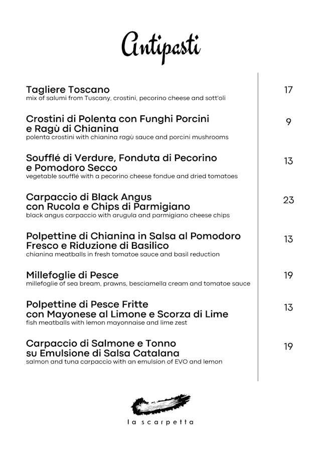10/10Arturo and his magnificent staff have done it again! Octopus salad with potatoes was a superb starter. Followed by pici pasta with chianina beef ragu. Full of flavor and cooked to perfection. Some lemon sorbet for dessert. Bravo, La scarpetta!