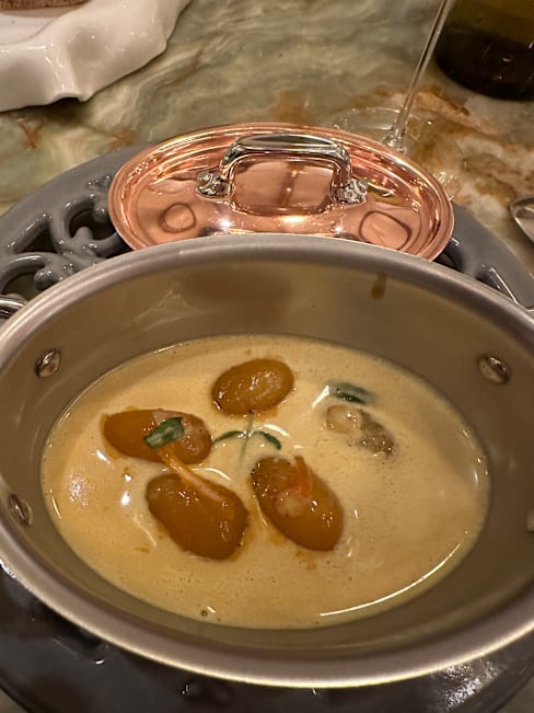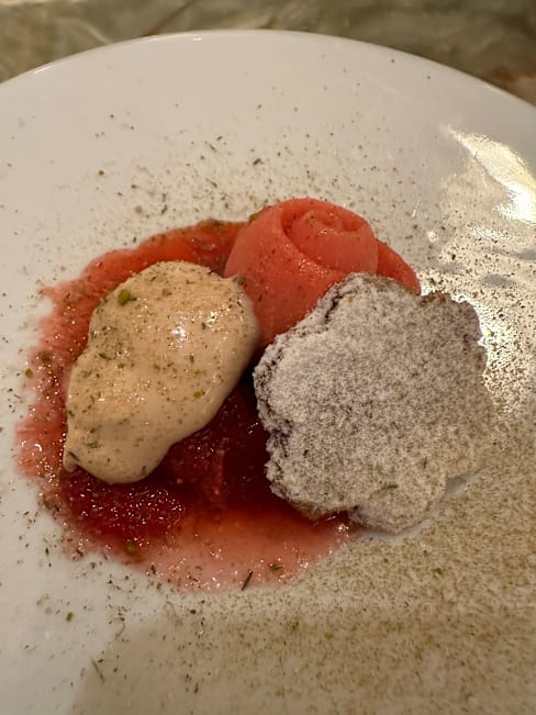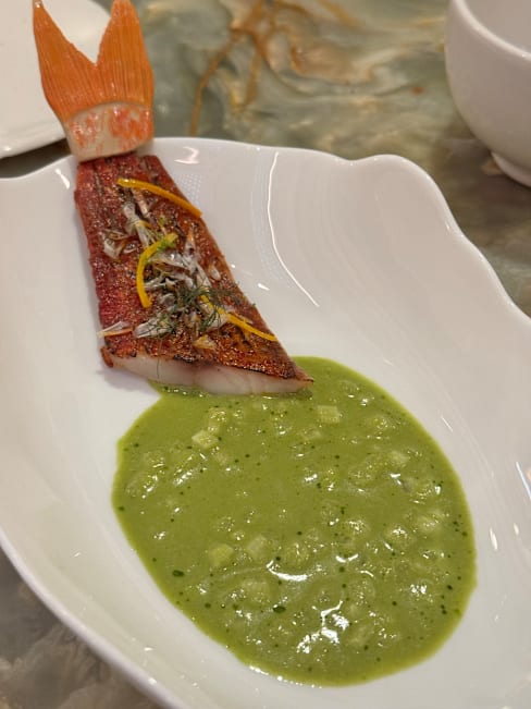 6.5/10Welcoming and attentive staff. Certain courses were good. Staff was unable to understand my problem in English three or four times (air conditioning was directed towards my feet and I was very cold sitting there). Description of the restaurant provided in a book in the beginning was only in French, and an English speaking manager even did not try to explain it to us. He just put that book on our table and told “it’s in French, and that’s it”. Regarding the food, I have some questions about desserts. Why almost all of the deserts are just ice cream in various interpretations? Why in the end there are biscuits and nuts? The only desert I can remember is cream brûlée, but it’s still not you expect at 2* Michelin restaurant. I would prefer to have 1 or 2 really good complicated deserts rather then 3 ice creams, many biscuits, etc.