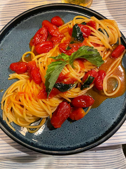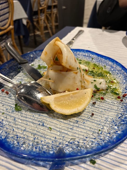 8/10Nice location , well set for dinner. Nice ambiance Our food arrived quiet fast with a wrong order,, we ordered lobster spagetti, was ok not more, a bit chewi Carpaccio fish was ok, melanzana small dish came at very last,, my oyster (7€) was tiny and the mozarella wasnt nice at all, too stringy, dry inside, didnt like the texture, sorry Wine was great!