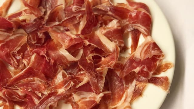 Lechuga variada, jamón ibèrco, nueces, queso de cabra y vinagre de modena