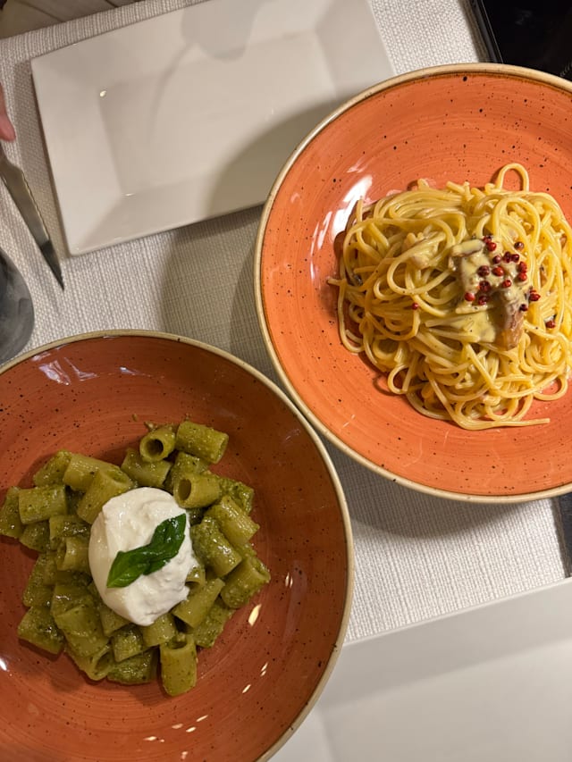 9.5/10Try the pesto pasta with burrata. It came out hot and fresh and perfectly cooked. Affordable with the discount!