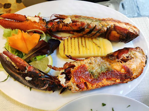 10/10Nice half lobster tated terrific, Gmbas dand large prawns well preared. Alll accompied with a seefood tasty risotto.