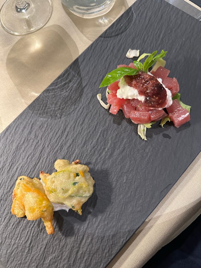 A persona, bevande escluse. Cinque portate. Consigliamo il nostro percorso degustazione a tutti i commensali dello stesso tavolo, disponibile per un minimo di due persone.