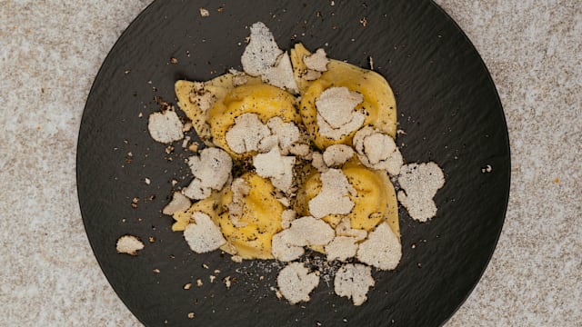 Farciti e chiusi a mano dal nostro chef con impasto di semola e solo tuorlo d’uovo, ripieno di ricotta, patate, formaggio d’alpe ed erbe fini, condimento al burro, grana lodigiano e tartufo nero.