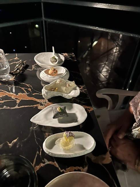 4.5/10First at all in this level of restaurants with Michelin star it’s shouldn’t serve broked glass. In hour coctail we drinked aperol with a piece of glass which we drinked and cutted tongue. Than it was so long time, very slow people working there. Many time asked to bring a straw but it wasnt heard at all. Asked to put still water, several time waiter poured into a glass always sparkling water Don’t worst this money
