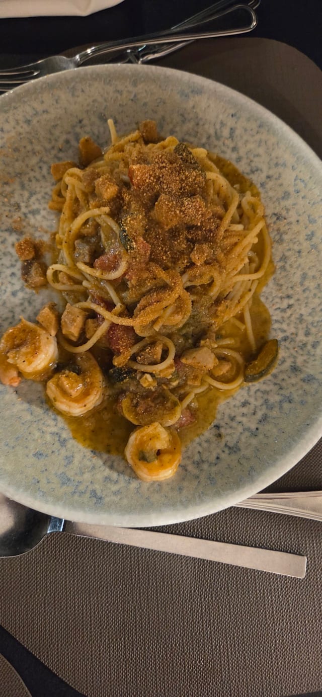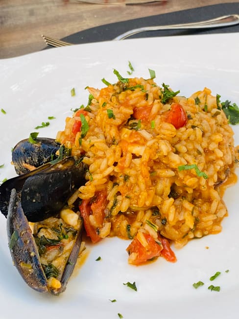 9/10Very good ambience as we dined in the courtyard. Staff was attentive. The caponata was delicious, the grilled swordfish was fresh and the seafood risotto was good!