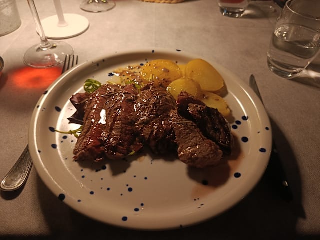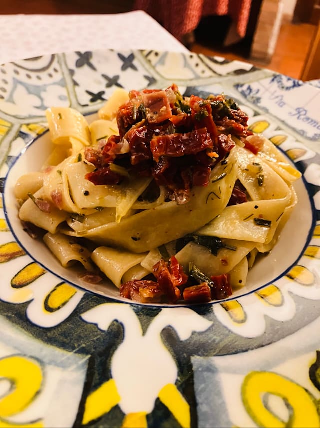 Pasta fresca, carne di Chianina e Cinta senese, selezione di formaggi con confetture e mieli, dessert della Barbara