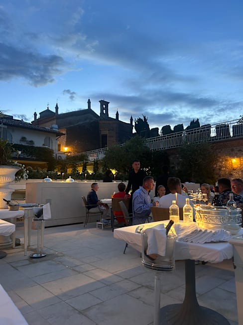 8.5/10Great the idea of having the tour at the beginning, we loved to learn a bit about the history of the restaurant. Nice ambiance! Service was too slow we waited over 45 minutes between our appetizer and the primo piatto. We sit at 7.30pm we left at 11pm without finish the dessert since our time was over. (We ordered only 3 dishes!) The Morone (fish) was way too salty.. we eat only half of that