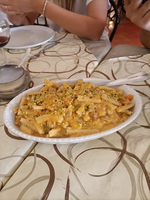 7.5/10Nice venue, friendly service, inexpensive. We were here at lunch time and there was no crowd. Pasta was cooked to perfection. Everything was good even though we found nothing strikingly tasty. Pizzas are supposed to be very good but are only served in the evening. We will be back for pizza. The bill was light and service excellent. Thanks.