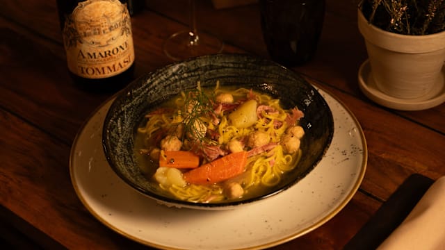 10/10Top quality food and service. This restaurant is not to be missed. The antipasti, firsts, seconds, and desserts were all a hit. We ordered the carpaccio, bruschetta, brodo, capretto with baked potatoes, panna cotta, and a semifreddo brownie. Every dish was so unique and so delicious.