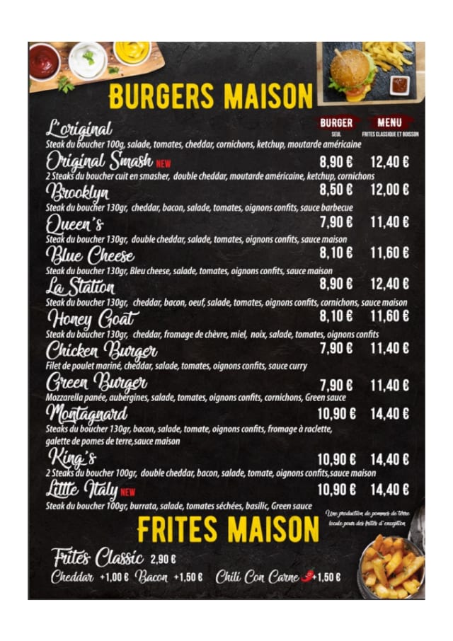 La Station burger vous propose de découvrir les burgers gourmet américain revisité, ainsi que nos délicieux Hot-Dogs et nos rafraichissant bagel.
