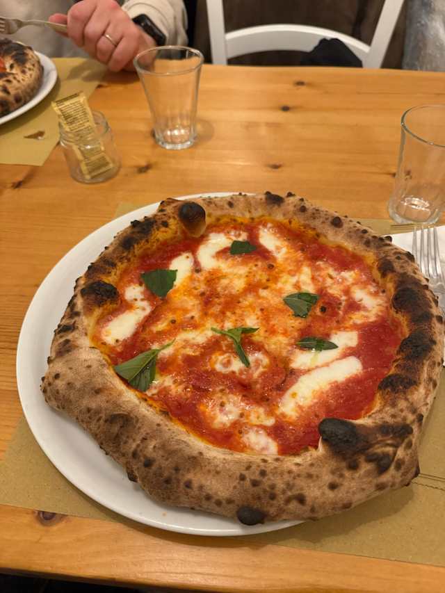 - Tomato sauce, bufalo milk mozzarella, basil