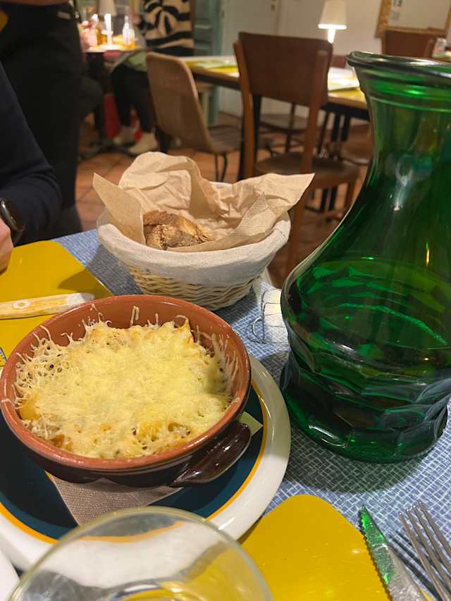 8.5/10Very friendly restaurant. The service is a must! The place is simple. We stayed inside because it was cold an rainy. The food is OK, but nothing particularly special. On the other hand, it is a good value for money. The red house wine was good.