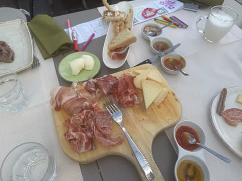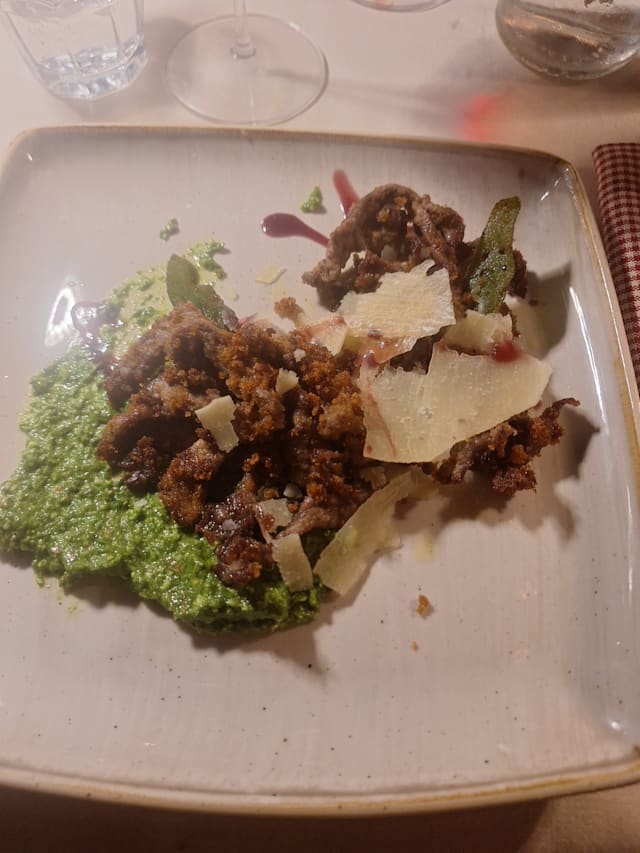 10/10Wonderful dinner in a relaxed, family-friendly atmosphere. Service was very friendly – the waiters chatted with us and explained each dish before serving. There were good vegetarian options. I had a beetroot risotto that came out a beautiful purple color, but the highlight was the dessert – freshly made cantucci, absolutely delicious. Prices were very reasonable. Loved the fact that after such a nice dinner, we could simply walk a few steps and be back in our room.
