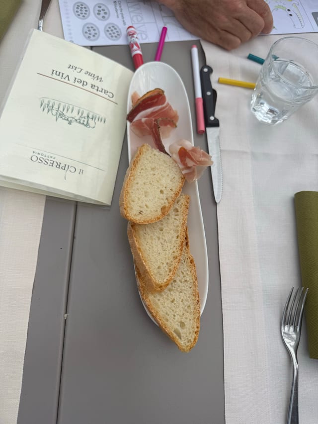 Dearly Diana, thank you very much for being a guest on our farm, gosh I'm afraid you made a mistake reading the receipt. We bring with the bread a small welcome which is offered by the farm for you and we never charge for it. Also bear in mind that, as you will have seen, we don't even charge for the cover charge that all restaurants usually put on, despite the fact that all dishes, including the bread and the schiacciata, are prepared here in the restaurant with produce from the farm. Sorry for the misunderstanding. I hope you can come back. I wish you all the best. See you soon. Alberto