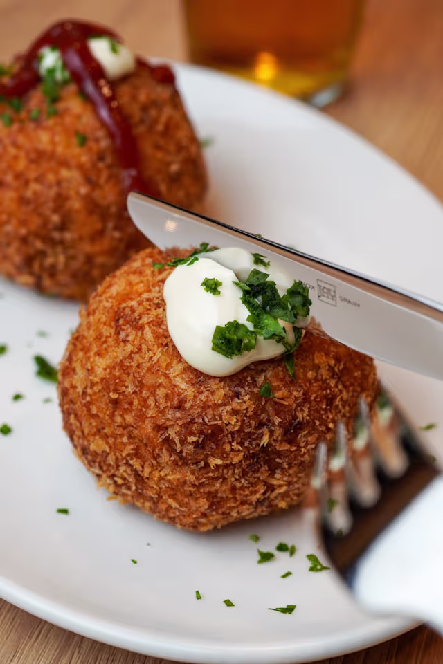 - Patatas de olot rellenas de carne picada y fritas al momento