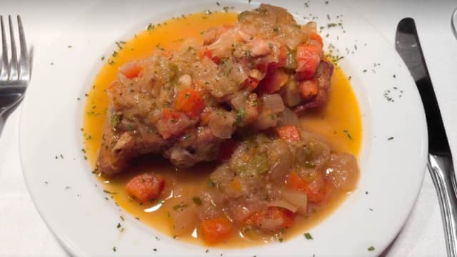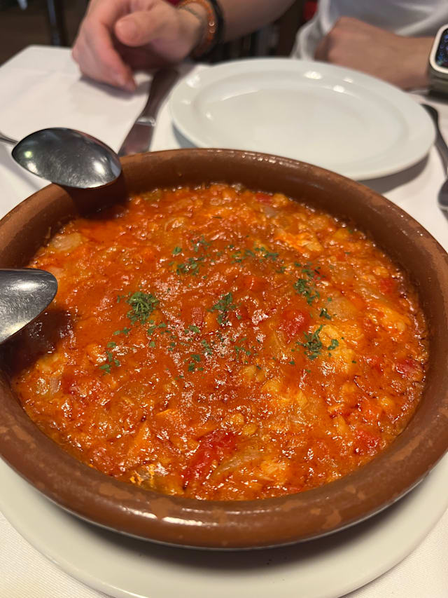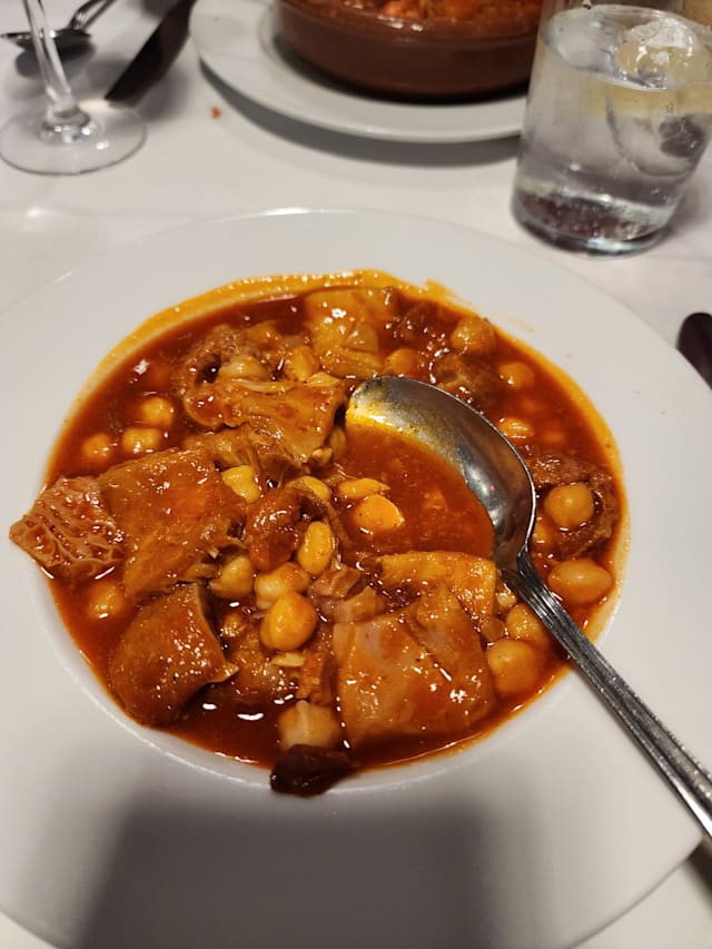 10/10Excellent traditional Madridien restaurant. We were welcomed on arrival and the chef came over to explain the range of dishes on the menu to us (in Engish). A really great experience if you are looking to sample some typical food of Madrid. We had Mackerel, squid, croquettes, cod, chicken and tripe! Excellent bottle of red too. Not pricey. Highly recommended!