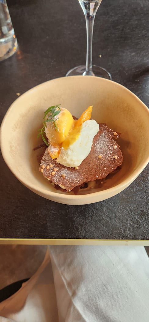 10/10Very inventive menu, with a wonderful mixture of tastes and textures. Loved the tuna starter and the Seine Bay scallops prepared two ways, as well as the millefeuille pastry with Corsican clementines and white chocolate ganache for dessert. Delightfully attentive service, and a cozy atmosphere that made conversation easy.