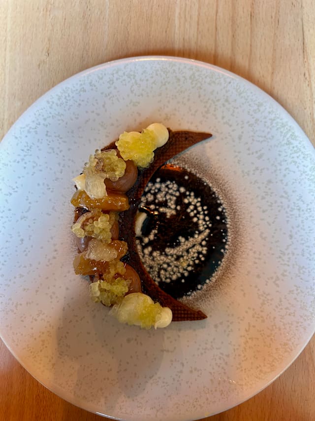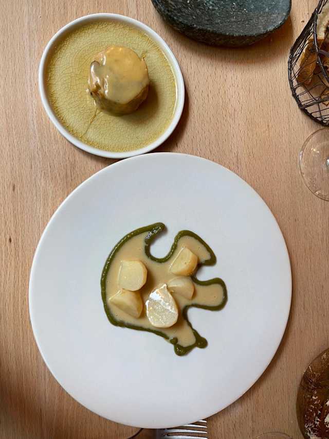 8.5/10The food was good but not spectacular. 5 course menu with wine pairing was 75eur + 45eur. We ordered one vegan menu and had to remind the staff all the time about it… I would expect at this level restaurant they would note it.