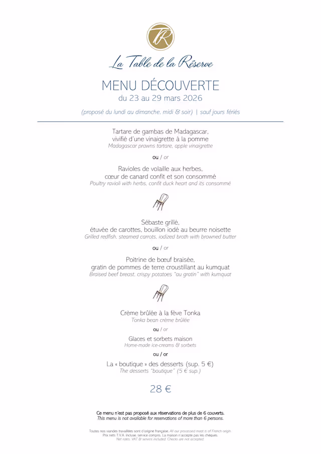 Great lunch at La Table de la Réserve. The three-course menu decouverte was interesting and executed well above and beyond the price. Service was also on point and enjoyed within the newly renovated space. Well done!