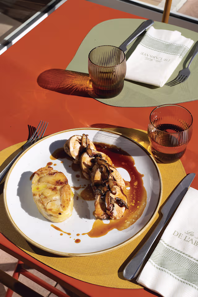 - Roasted pork collar, « mountain pork from the Alps », gratin dauphinois and pork jus