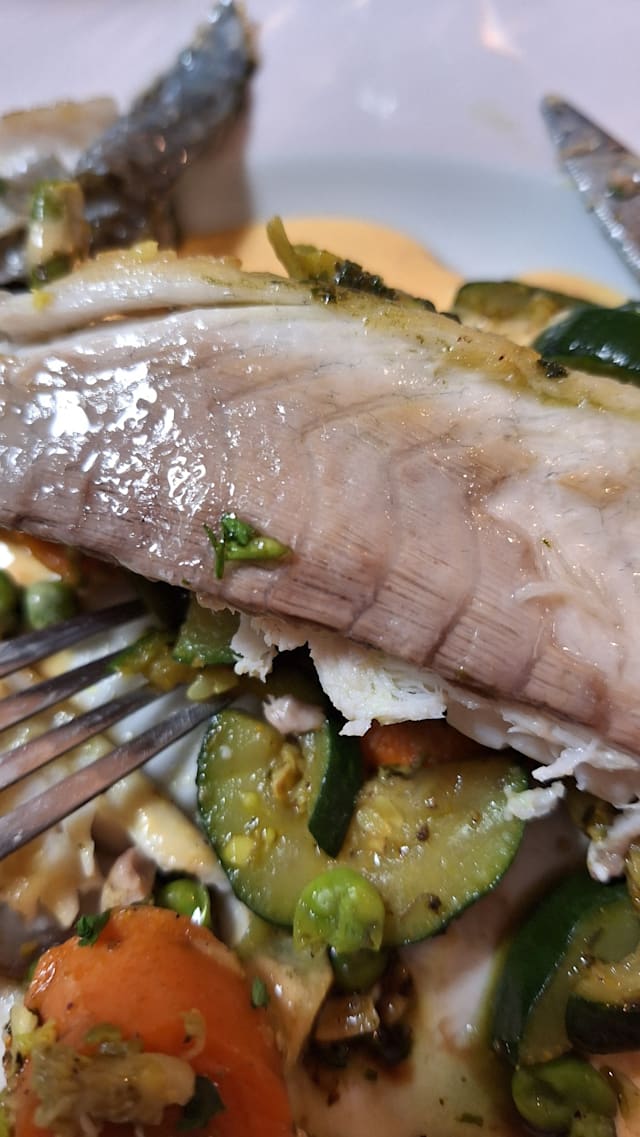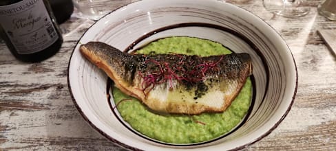 9/10Very interesting terrine with blue cheese. Delicate and not too poignant. Very good seabass but I would expect vegetables to be more al dente not overcooked. Fantastic service. Good wines for a good price. Nice ambience. I will return.