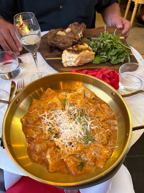 10/10We had a cute outdoor table! A tiny cozy restaurant. A reservation is a must. Wonderful service and food! Very generous portions! We shared the burata starter to begin ! Then my husband had the beef and I had the pasta ravioli with beef. It was all delicious!! We enjoyed a glass of champagne and a bottle of red wine. An excellent dinner an amazing place to celebrate our 45th anniversary!!❤️