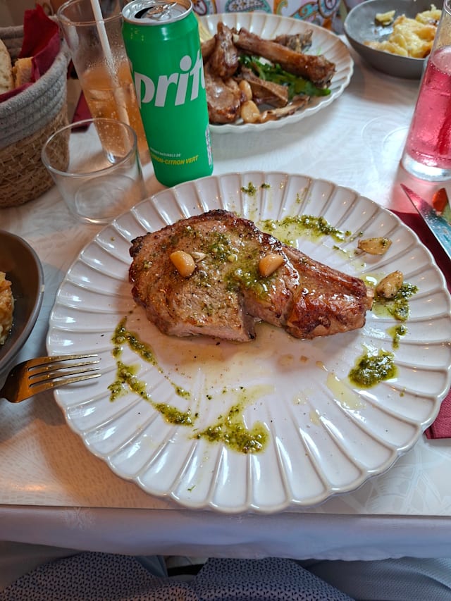 10/10We spent two weeks on the Italian & French Rivera and this was one of the two best restaurants. We had the braised lamb shank and the grilled lamb chops. Wow they were both outstanding! They came with potato au gratin which I don’t generally eat but it was so good I finished it all. They gave us some homemade Pêche a peach liquor, at the end. Delicious. Don’t miss out on this place.