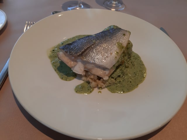 Filet de bar rôti, risotto fondue de fenouil, beurre nantais