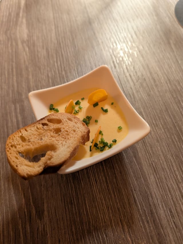 7/10The restaurant is located par terrre, so very dark cellar like room. Dishes are good but expensive. Staff are able to speak English but still limited. The wine we found one the card from the neighbour winery 50 m away was sold out, so we asked them to go get it;-) Please keep your wine card updated. Rather overpriced compared to the Michelin Guide (Bib Gourmand) restaurant where we hade lunch.
