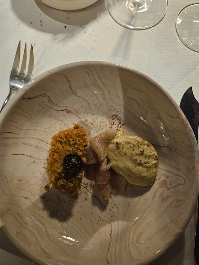 3.5/10Service miserable not only for a Michelin-starred place boasting main courses for EUR100+ and tasting menus near EUR200, but also for “regular places”. Staff couldn’t remember that we didn’t speak French during the entire night. They also stopped serving us when new guests arrived to seat them - they were clearly more important (that’s how we felt). The food is a matter of taste but we were not impressed with that either. The fact that the vegetarian menu features fish is a joke, too. To laugh at the guest when they ask for alcohol-free wine in 2024 is similarly out of place - in our opinion.