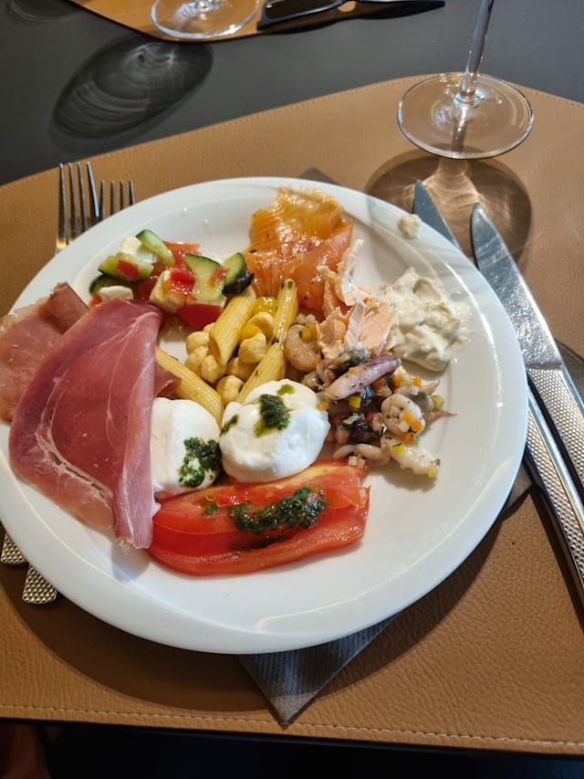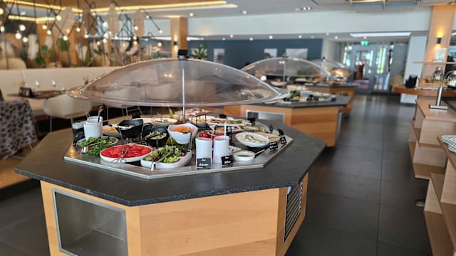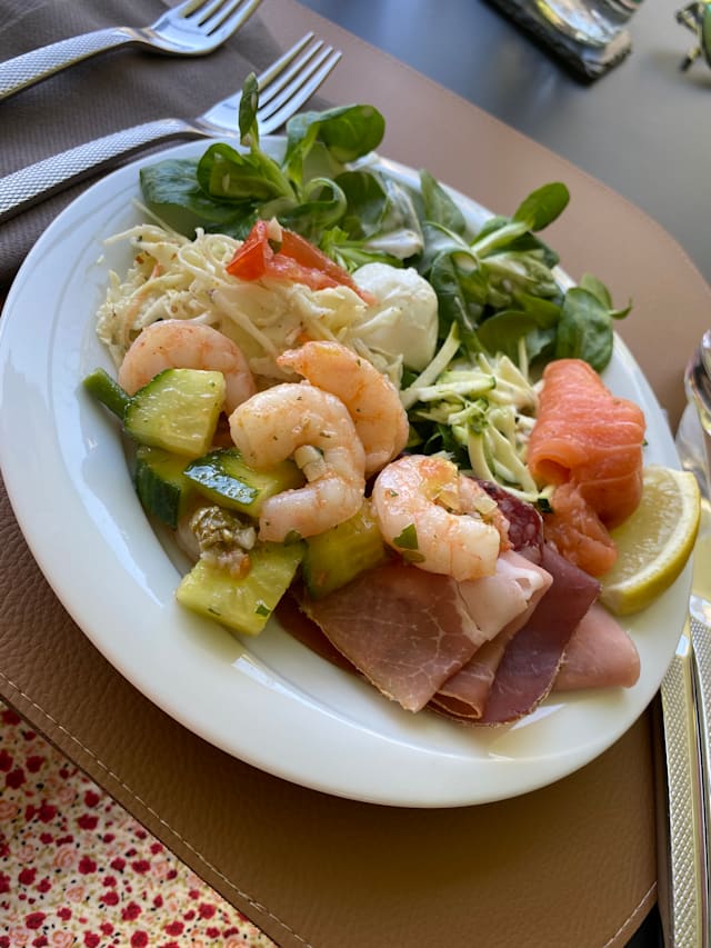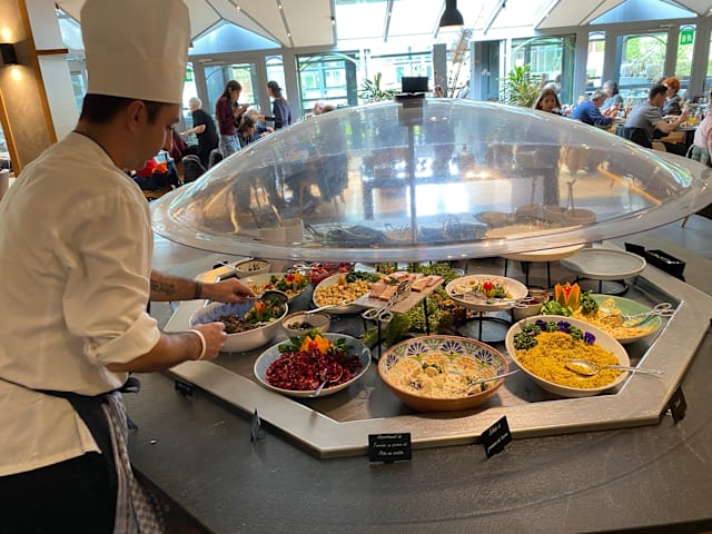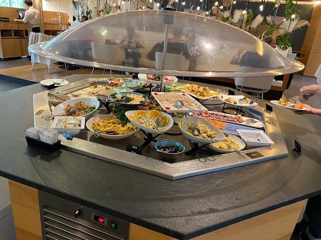 8.5/10Nice and fresh food (large choice) and good service. The dessert options were surprisingly good: they have someone who masters patisserie in the kitchen.