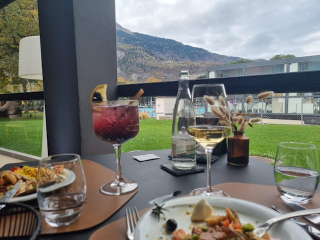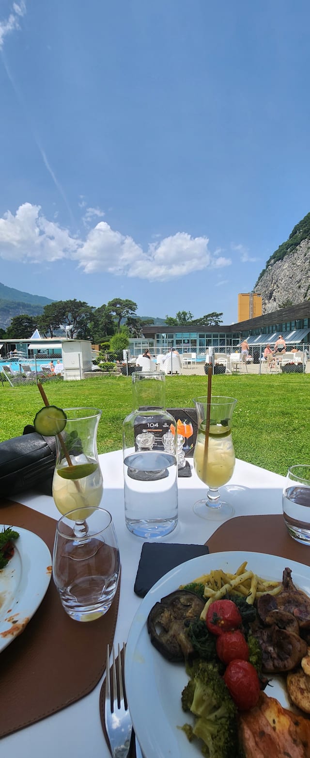 10/10Very tasty food after a relaxing afternoon in the thermal baths. We ate the hot buffet which offers various types of very good quality meat and fish.