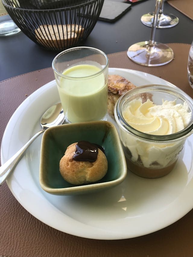 9.5/10Excellent buffet and top produce with lots of choice for a vegetarian. A very friendly and helpful chef who will cook meat and fish to order and a beautiful shady terrace on a hot summer’s day. A memorable moment.