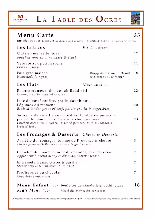 La Table des OcresDear Mr. Whitmore, Thank you so much for your kind comment. It has been a real pleasure to make your evening enjoyable with very good food and personnalized service. Hope to welcome you again sooon, Kind regards