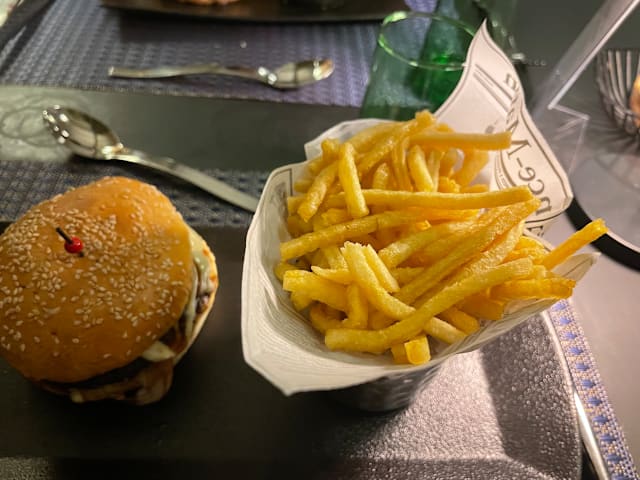 (Buns de la boulangerie Bonnin, steak haché de la boucherie Pradervant, fromage du Gîte)